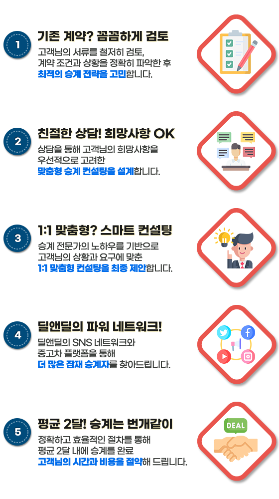 딜앤딜은 합리적인 고정 수수료로 승계 서비스를 제공합니다.